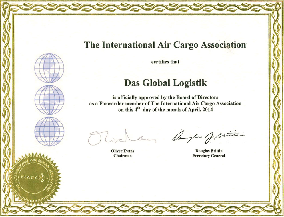 - Свидетельство о включении ООО «ДАС ГЛОБАЛ ЛОДЖИСТИК» в Реестр таможенных представителей № 0461/03 от 17 Апреля 2018 г. (ранее № 0461/02 от 12.12.2017 г., № 0461/01 от 28.07.2015г., № 0461/00 от 11.05.2012г.).