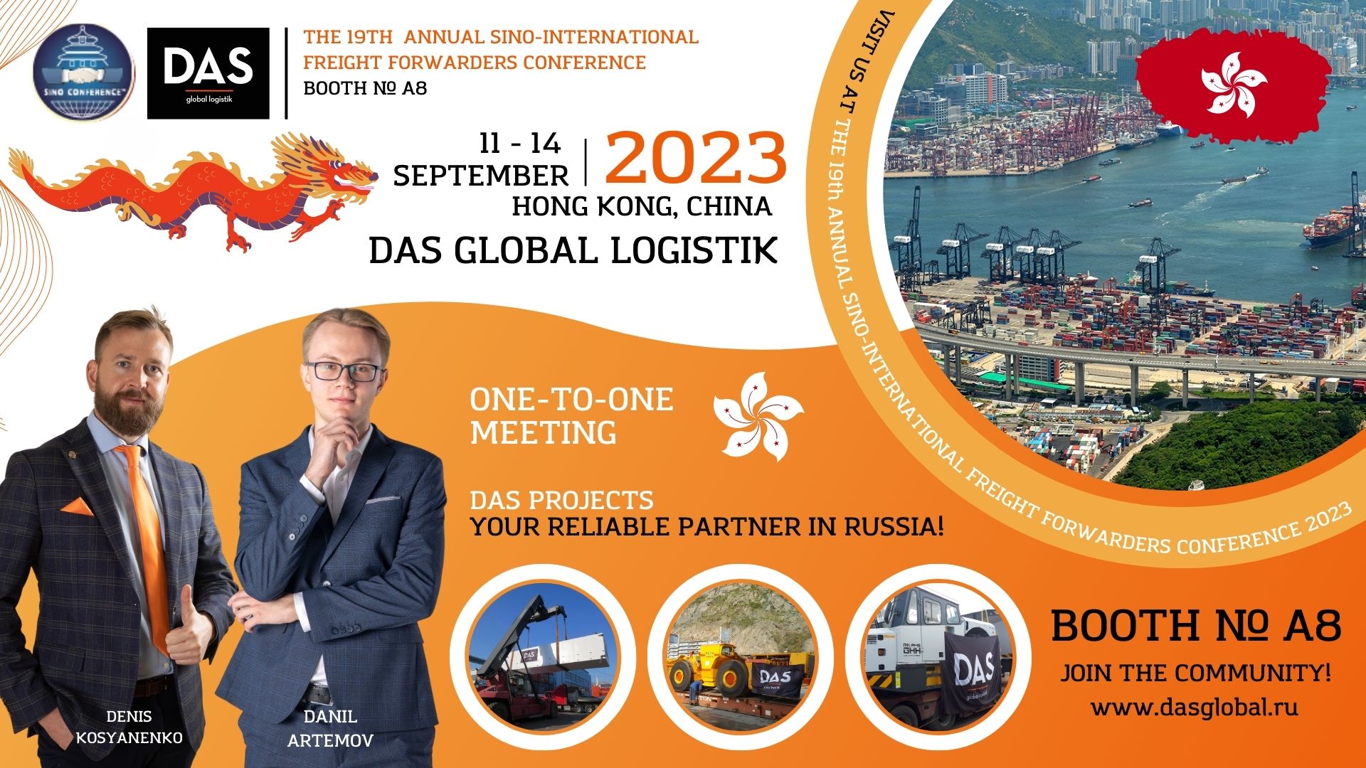 Со многими экспедиторами и поставщиками услуг мы уже знакомы, так как ежегодное участие в конференции позволяет нам наращивать свои силы и возможности через расширенную сеть логистических международных представителей. Благодаря верным и надежным китайским и гонконгским партнерам DAS GLOBAL LOGISTIK уже реализовала более 1000 успешных и интересных проектов.
